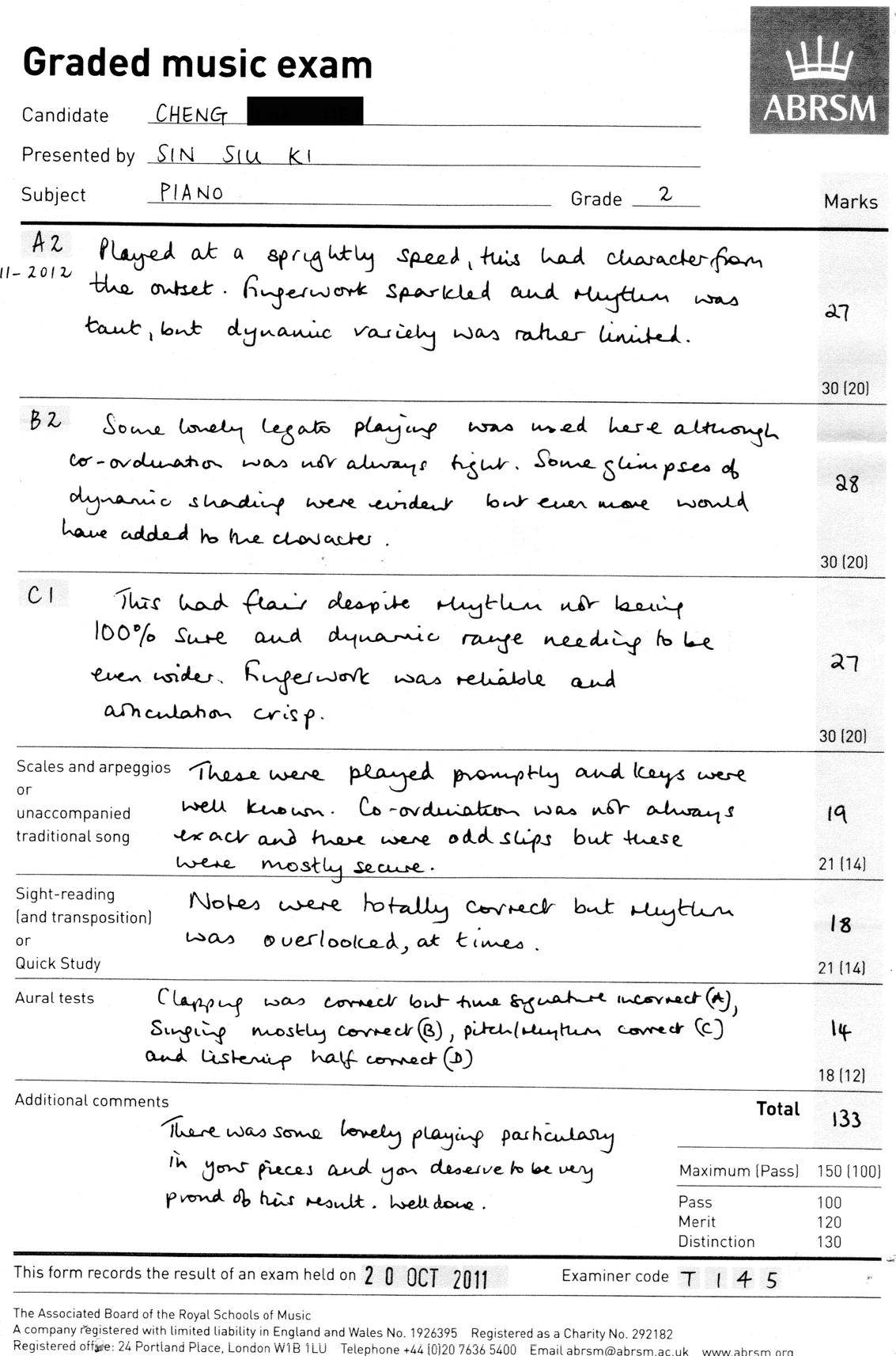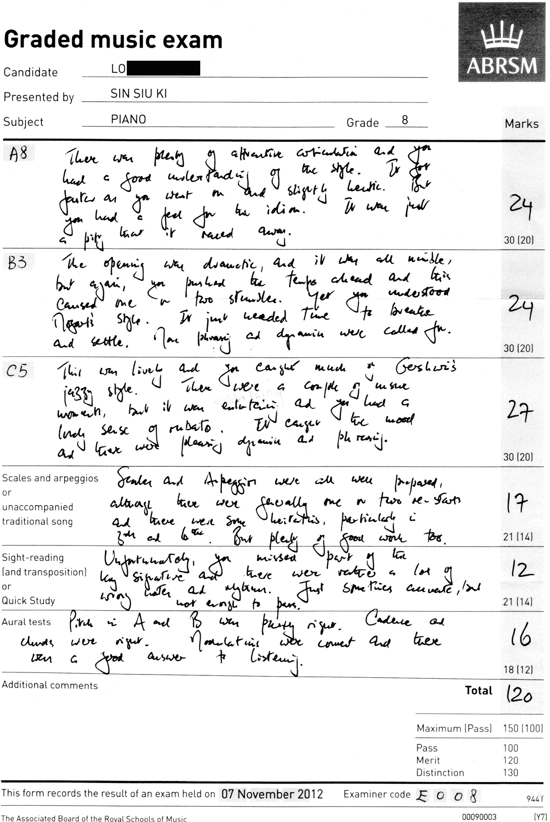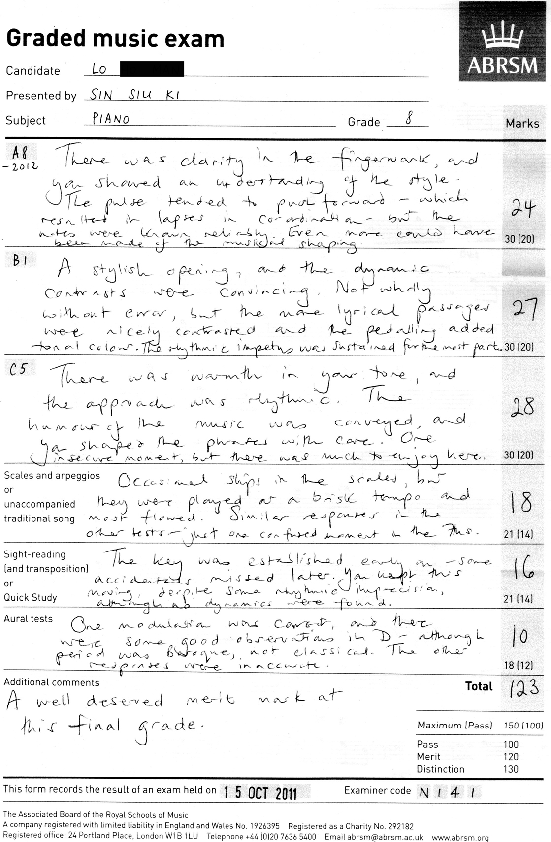 Grade 1 to 8 certificate examination ¤@¯Å ---- ¤K¯Å
