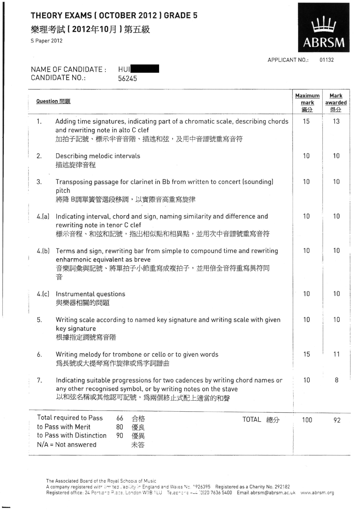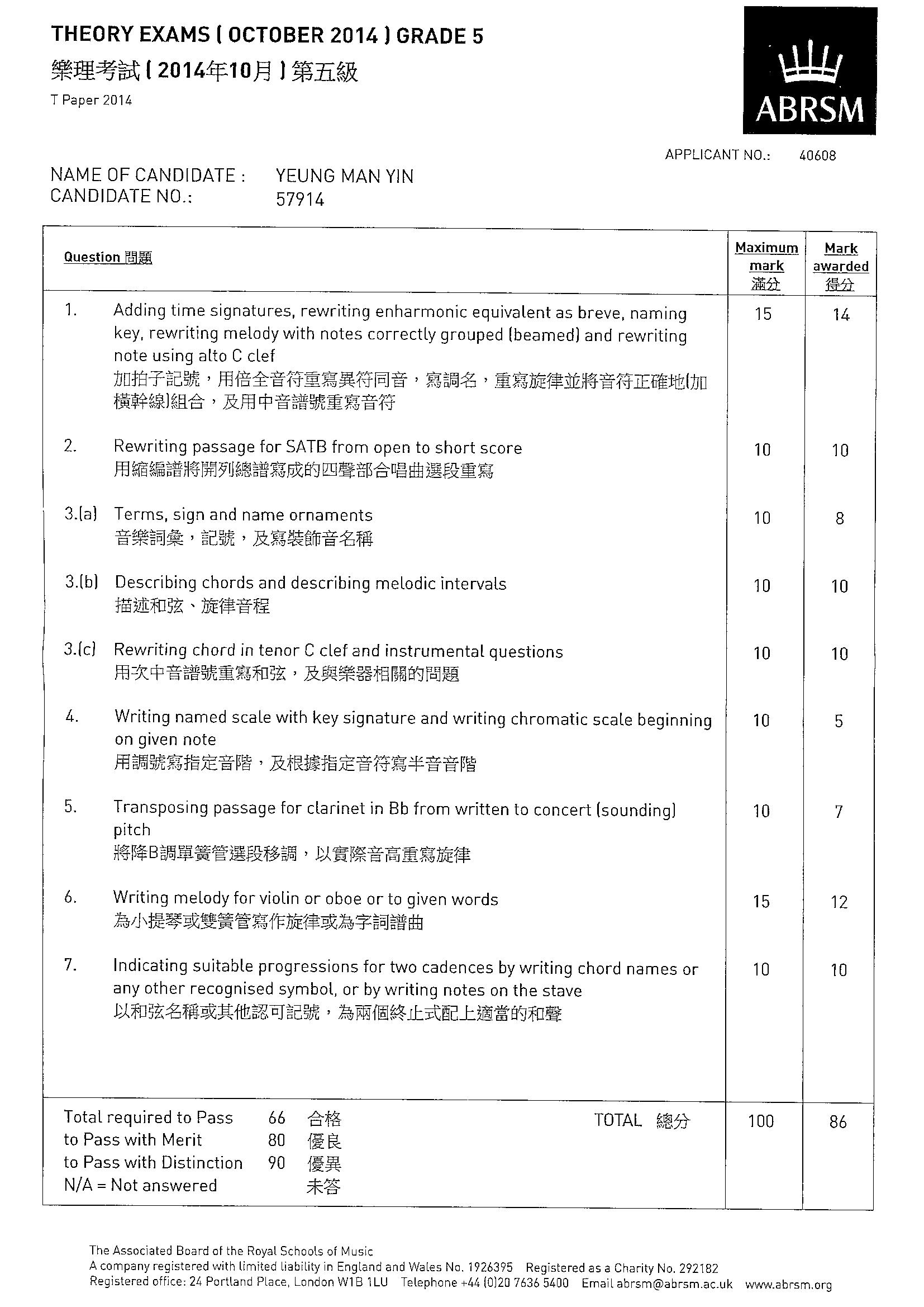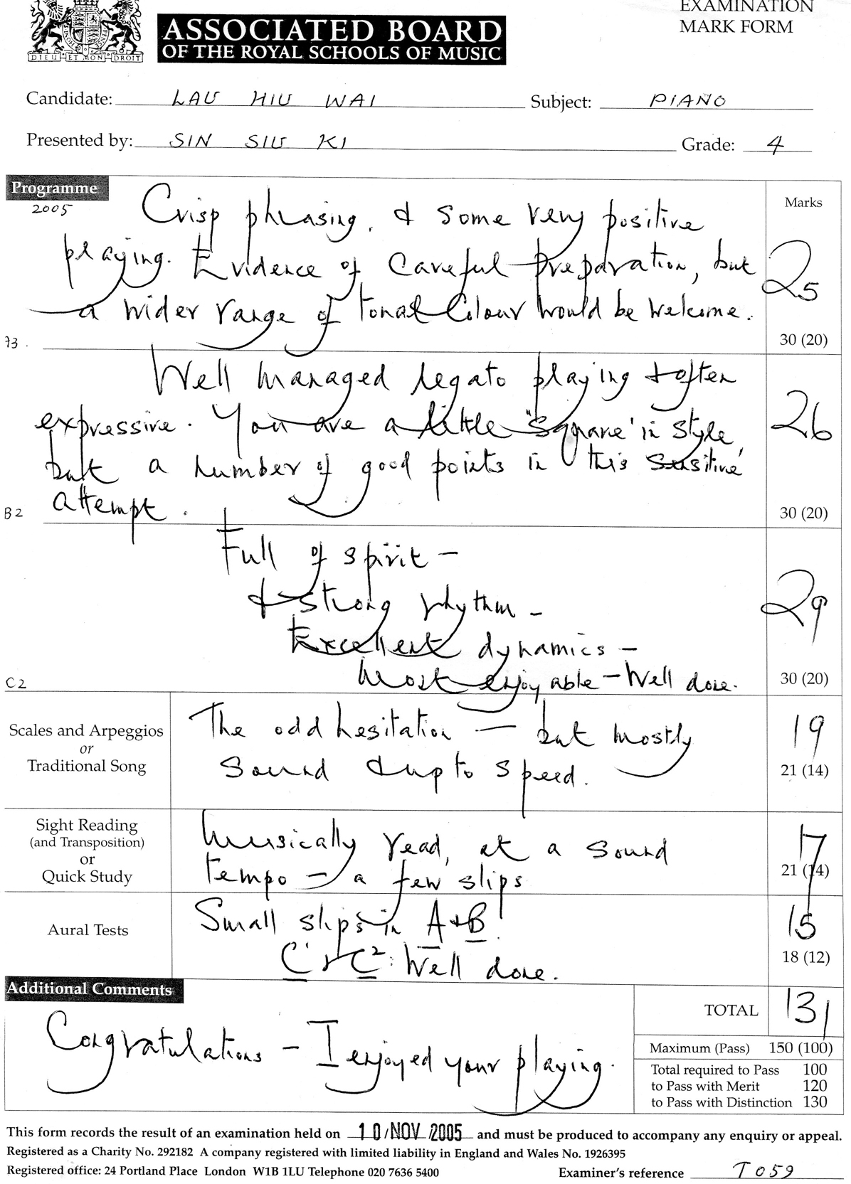 Grade 1 to 8 certificate examination ¤@¯Å ---- ¤K¯Å
